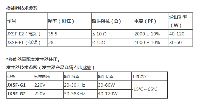 - 產品類型:超頻超聲波換能器JXSF-E系列
