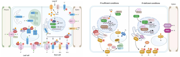 植物鉀/磷吸收運(yùn)輸及信號(hào)轉(zhuǎn)導(dǎo)機(jī)制示意圖