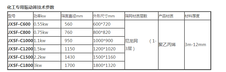 - 產(chǎn)品類型:化工專用振動篩JXSF-C系列