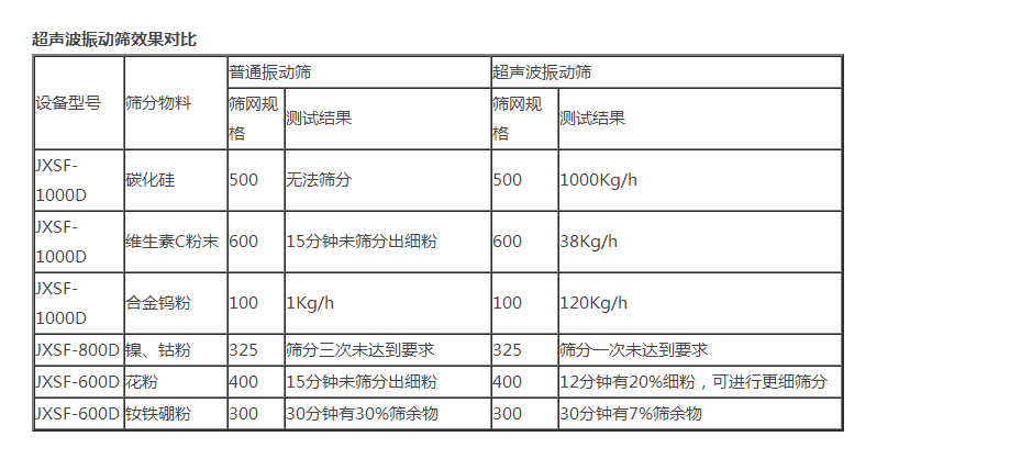 JXSF系列超聲波振動篩篩分精度可提高1-100%,產(chǎn)量可提高1-20倍;真正滿足600目以上工業(yè)化生產(chǎn)需要!